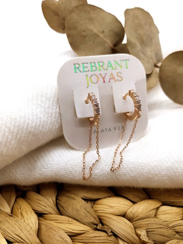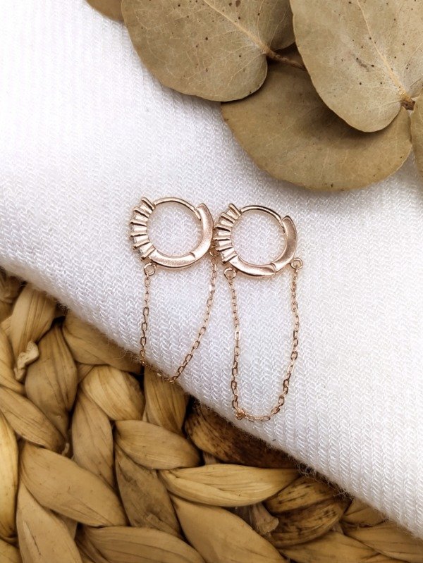 Aros Argolla con Colgantes de Cadena. Zarcillos, Aretes, Cierre Huggies. Baño de Oro Rosa. Tamaño: 14 mm.