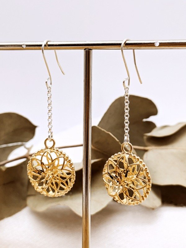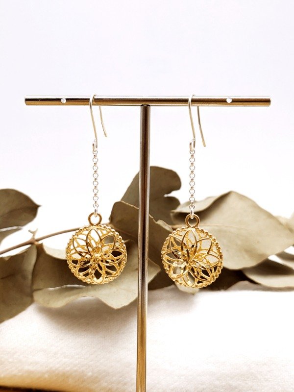 Aros Colgantes Mandala Dorada. Aros Colgantes.