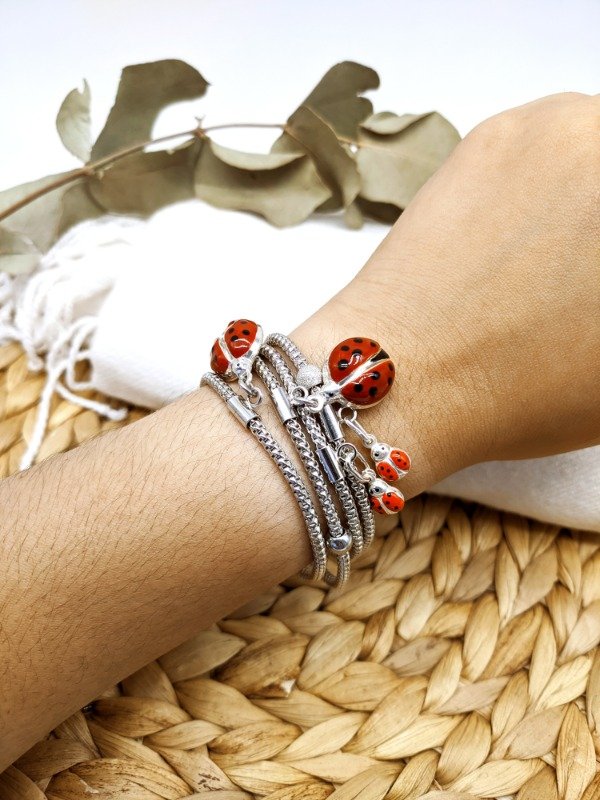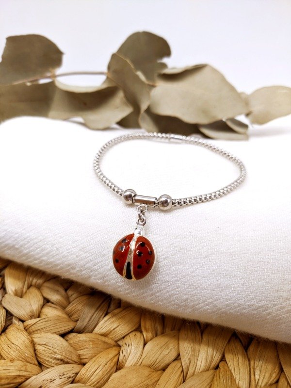 Pulsera Mariquita Grande. Pulseras. Pulsera Elastizada con baño de rodio.