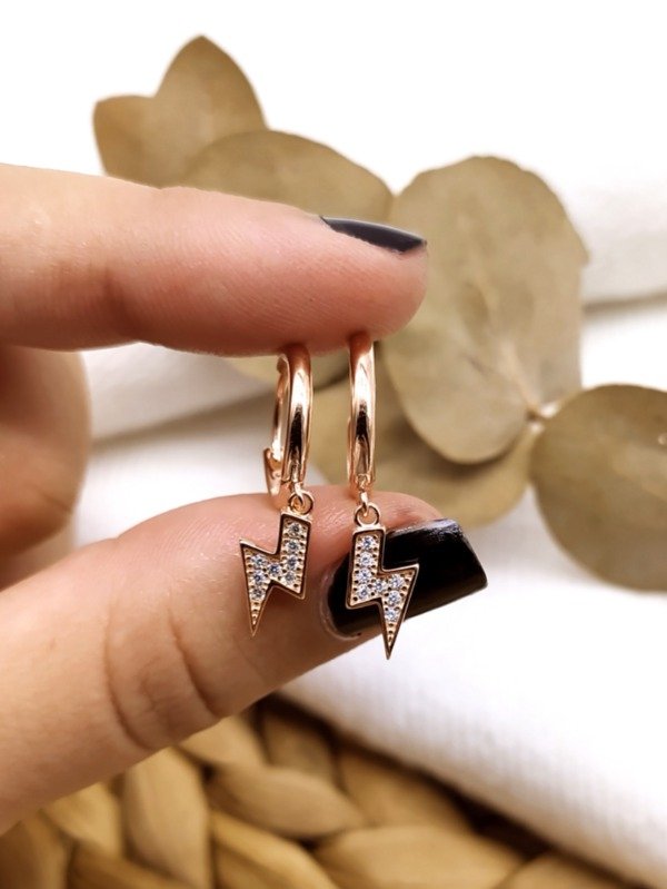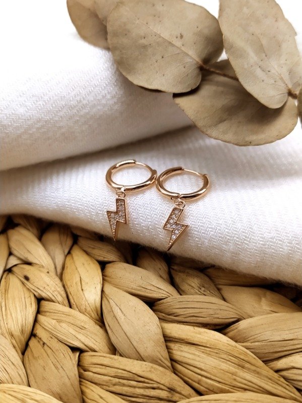 Aros Argollas con Dijes Colgantes de Rayos. Zarcillos, Aretes, Pendientes, Cierre Huggies, 14 Milímetros
