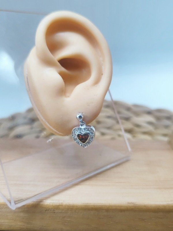 Aros Colgantes Corazón Almada Rojo