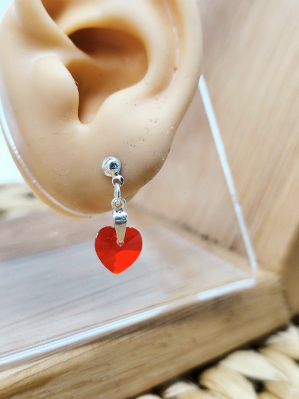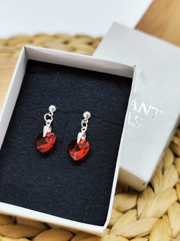 Aros Colgantes Swarovski Corazón Rojo
